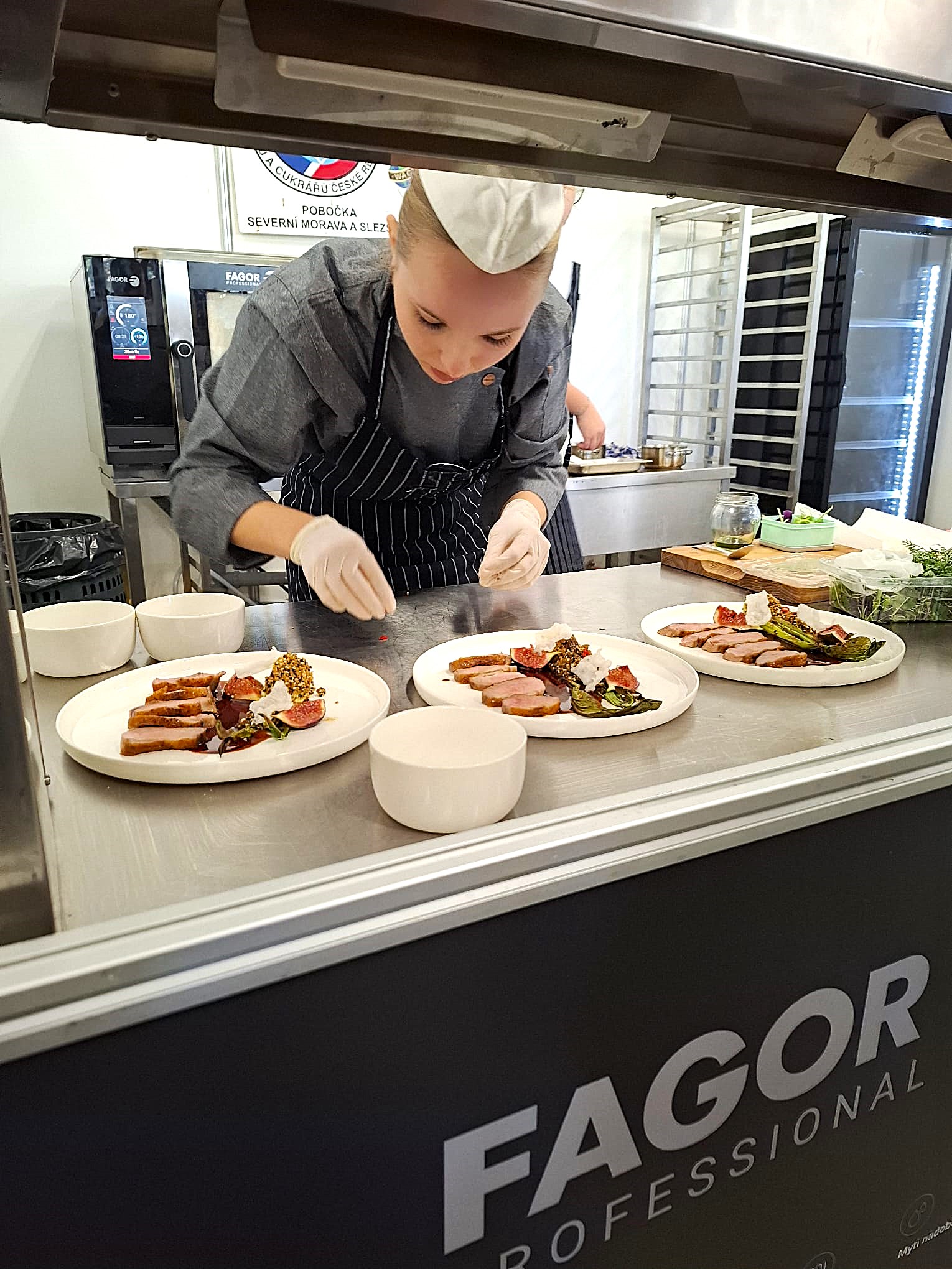 Naši školu v kategorii Kuchař kadet reprezentovaly dvě soutěžní dvojice - Tereza Juřicová s commis Martinou Župkovou ze třídy 2.E a Tomáš Gremlica s commis Tetianou Krokou ze třídy 2.B. Soutěžící měli za úkol připravit během 45 minut 3 porce libovolného moderního teplého pokrmu. Tereza připravovala kachní prsa s grilovaným pak choi, fíky a espumu z batátů. Tomášovým soutěžním jídlem byla vepřová panenka, mrkvové pyré, celer a škvarky.